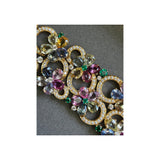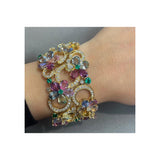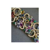 A beautiful floral motif bracelet by Bvlgari, set with multicolor sapphires, emeralds, and diamonds. This piece is also adjustable, ensuring a perfect fit for almost any wrist.
