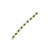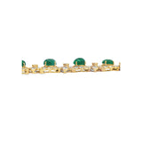 Beautiful yellow gold bracelet with floral motif. It features 9 cabochon emeralds and 126 round-cut diamonds.