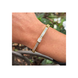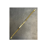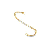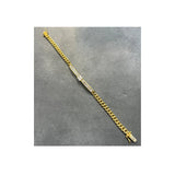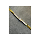 A Cuban link bracelet set with baguette cut diamonds and a larger princess cut diamond in the center.