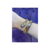 A beautiful rose gold wrap snake bracelet adorned with marquis diamonds depicting the snakes eyes.