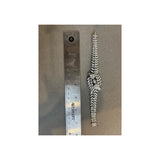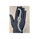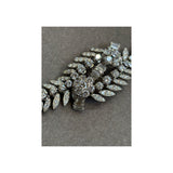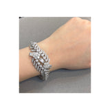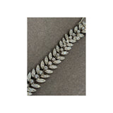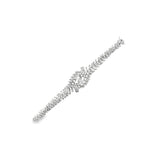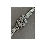A white gold bracelet set with round and baguette-cut diamonds featuring two floral motifs with marquise-shaped settings accented by round-cut diamonds.