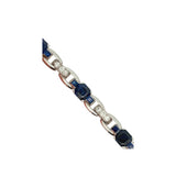 A link bracelet by Oscar Heyman Brothers set with ascher and square cut sapphires, accented by round cut diamonds.