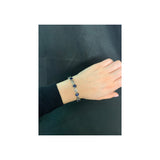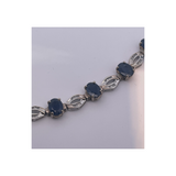 A white gold link bracelet, adorned with 10 oval sapphires and 88 square and triangle-cut diamonds.