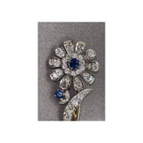 A floral motif brooch set with old mine cut diamonds and sapphires.