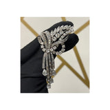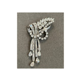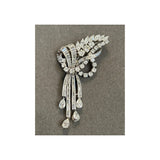 A beautiful cascade diamond brooch set with pear, baguette, round and marquise-shaped diamonds.