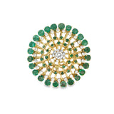 A circular brooch set with round-cut diamonds and emeralds
