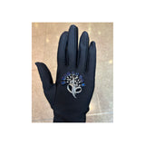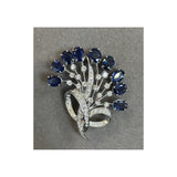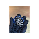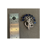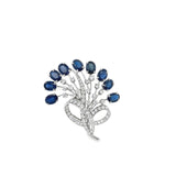 A floral motif brooch set with round cut diamonds and 9 oval cut sapphires.