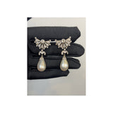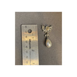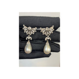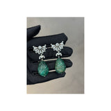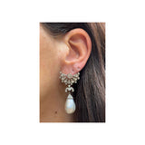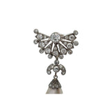 A pair of earrings set with old European and single cut diamonds, accompanied by two detachable pairs of drops: natural pear shaped pearls and carved emerald drops in a floral motif.