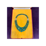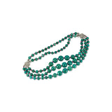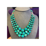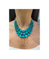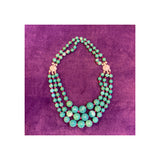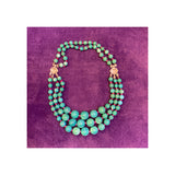 This superb necklace made circa 1925 set with 3 rows of graduating turquoise beads set with ruby bead spacers.