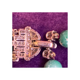 2 diamond set platinum clasps 2 back rows of turquoise beads with ruby spacers.