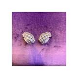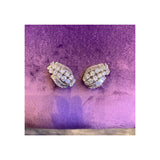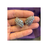 A pair of platinum and 18 karat white gold earrings set with round cut and baguette cut diamonds