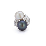 David Webb White and Black Pearl You & Me Ring