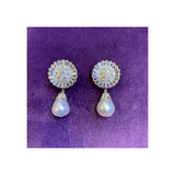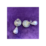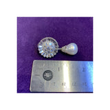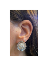 A pair of platinum and 14 karat white gold earrings set with approximately 3.42 carats of round cut diamonds, and approximately 3.28 carats of baguette cut diamonds. The earrings come with 2 pearl attachments allowing the earrings to be worn in 2 ways.