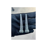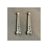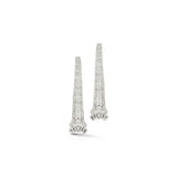 A pair of earrings featuring round and baguette-cut diamonds in a Eiffel tower motif