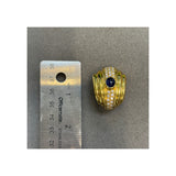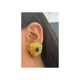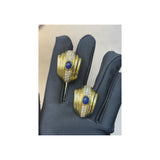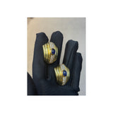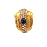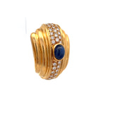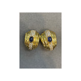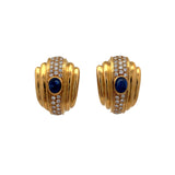 Yellow gold earrings set with 2 cabochon sapphires, accented with 60 round cut diamonds.