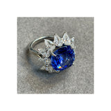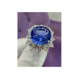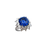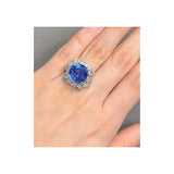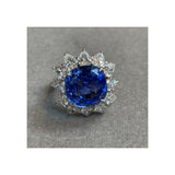 Certified Natural 13.24 Carat Unheated Cushion Cut Sapphire and Diamond Ring