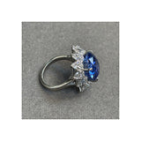 A cocktail ring centering a cushion-cut sapphire surrounded by pear-shaped diamonds.