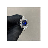 Certified Natural Unheated Oval Cut Sapphire and Diamond Ring