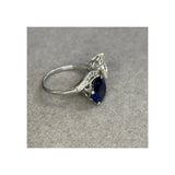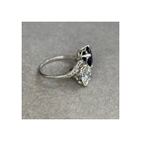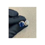 A "You and Me" ring set with a GIA certified round cut diamond and an AGL certified sapphire, accented by round cut diamonds.