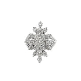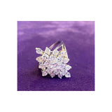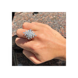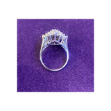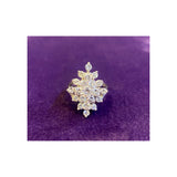 A ring featuring a cluster of 21 round cut diamonds set in 14 karat gold.