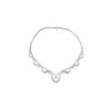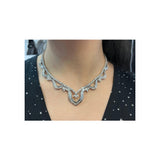 A diamond necklace adorned with 14 marquise-cut diamonds, 134 round-cut diamonds, and 152 baguette-cut diamonds.