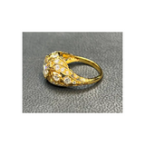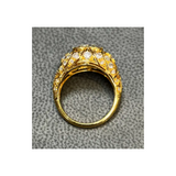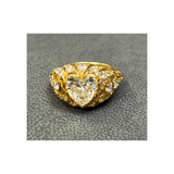 A ring featuring one heart shape center diamond surrounded by round cut side diamonds.