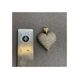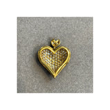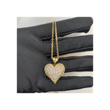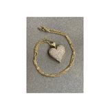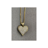 A yellow gold necklace with a heart-shaped pendant set with round-cut diamonds.