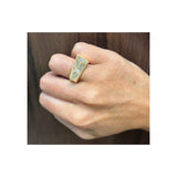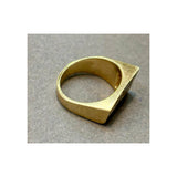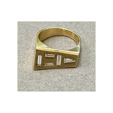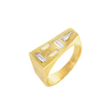 A ring featuring five baguette cut diamonds set in 14 karat yellow gold