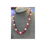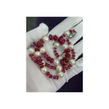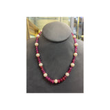 Natural Burmese Ruby Bead Pearl and Diamond Necklace