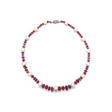 Natural Burmese Ruby Bead, Pearl, and Diamond Necklace