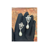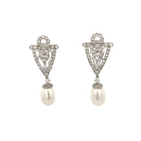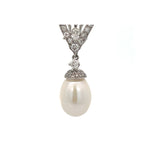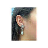Day and night earrings with 2 cultured pearl drops accented with marquise and round cut diamonds.