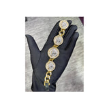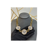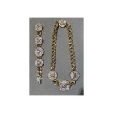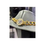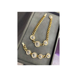 A yellow and white gold link bracelet and necklace set by Versace featuring Iconic Medusa motifs, each accented with round-cut diamonds