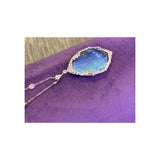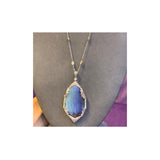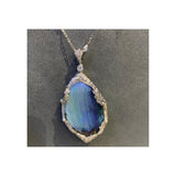 A necklace featuring a large boulder opal pendant. surrounded with old mine & rose cut diamonds. Paired with a pear shape diamond chain.