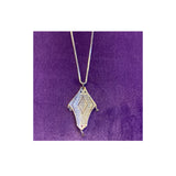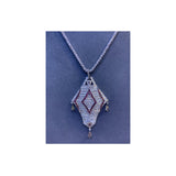 This necklace features a diamond pendant with square cut rubies and three dangling briolette diamonds