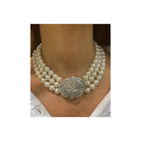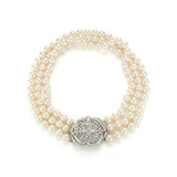 Three-Strand Pearl and Diamond Necklace