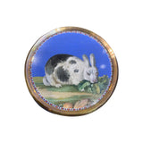 A micro mosaic depicting a fat rabbit eating leaves set in a wooden frame. Made by the late 18th century mosaicist Giacomo Raffaelli.