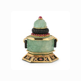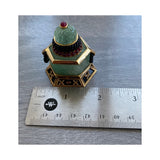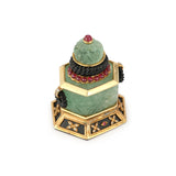Consisting of carved emeralds, onyx, cabochon rubies, & round cut diamonds.