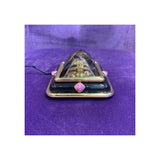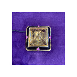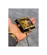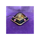 A very unusual working nightlight set with one large citrine on a base of 18 karat gold and onyx set with 4 cabochon rubies.
