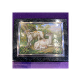 A variegated hardstone snuffbox with a silver gilt framed micro mosaic of a family of greyhounds set in the lid. The micro mosaic is attributed to the late 18th century early artist Giacchino Barberi.