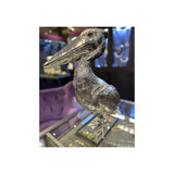 A a very large size silver pelican crafted with a technique known as ‘lavorazione a pelo’ or ‘hair-like workmanship. This technique involved infinite silver filaments of varying lengths and thicknesses being welded to portray the actual appearance of the natural coat to catch fine details such as feathers as seen on this pelican.