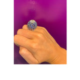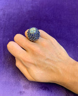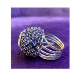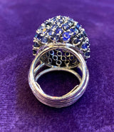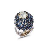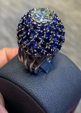 Diamond & Sapphire Cluster Ring 1 round cut diamond surrounded by round cut sapphires all set in a 14K white gold split shank setting