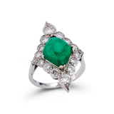 Certified Cabochon Emerald & Diamond Cocktail Navette Ring