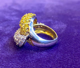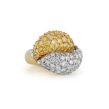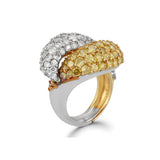 58 yellow round cut diamonds approximately 2.76 cts. 58 white round cut diamonds approximately 2.76 cts, set in platinum & yellow gold.