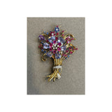 A yellow gold floral brooch by Tiffany & Co. set with diamonds, sapphires, and rubies.