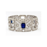 Important Wide Art Deco Diamond and Sapphire Bracelet
