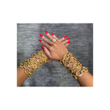 A transformable set by Van Cleef & Arpels composed of nine bracelets, seven of which are set with diamonds. The bracelets can be worn individually or connected to form one very long necklace, two shorter necklaces, or a combination of necklaces and bracelets. The set is complemented by a matching ring and pair of earrings.