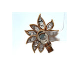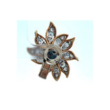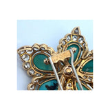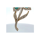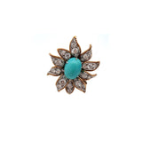 The brooch features cabochon turquoise, elegantly complemented by single-cut and round-cut diamonds