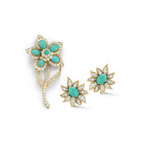 Van Cleef and Arpels Turquoise Flower Earrings and Brooch FLower Set