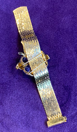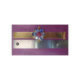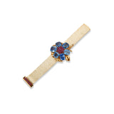 With a removable flower brooch. This bracelet can be worn with or without the brooch.