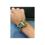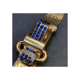 A bracelet featuring calibre sapphires & diamonds forming a knot motif. This bracelet is adjustable to different lengths.